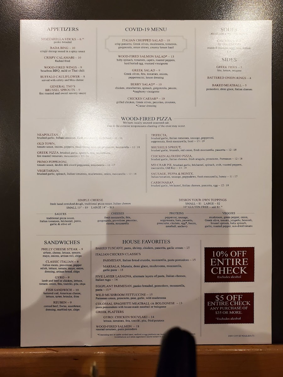 Roma Old Town Wood-Fired Pizzeria Menu